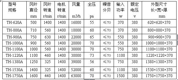 TH-A型雙百頁式負(fù)壓風(fēng)機(jī)技術(shù)參數(shù):