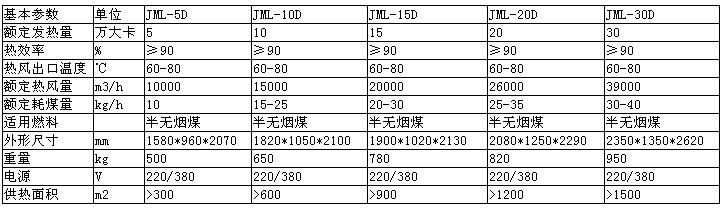 JML-D型系列溫室全專用自動燃煤熱風機技術數(shù)據(jù)