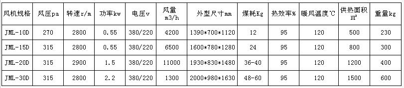 水暖溫室禽舍加溫機主機技術(shù)數(shù)據(jù):